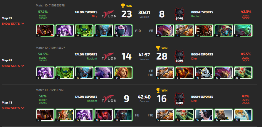 Фаворит очевиден, и мало кто ожидал неожиданностей в этой серии. До старта противостояния Talon делили первое место с Bleed, а вот Boom замыкали таблицу с 1 поинтом. К тому же, Boom подходили к этому матчу с заменой: тренер коллектива Mushi заменит Fbz — игрока третьей позиции.