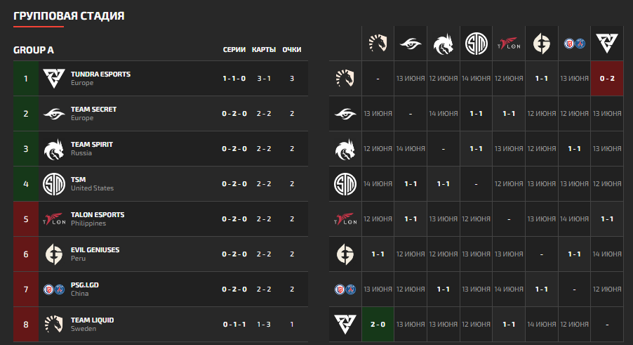 Tundra достаточно легко разобралась в своей первой встрече дня с Team Liquid, несмотря на две замены в составе. Эта встреча оказалась единственной, закончившейся со счетом 2-0, в остальных семи поединках была зафиксирована ничья.